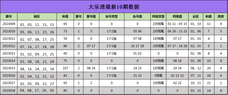 后区开出号码03、11,和值14,近10期和值齐在4-21之间,预测下期和值出刻下10-15。近10期,跨度在1-9之间,第1位波动范畴1-10,第二位波动范畴3-12。预测下期跨度3-7。后区保举号码01、08